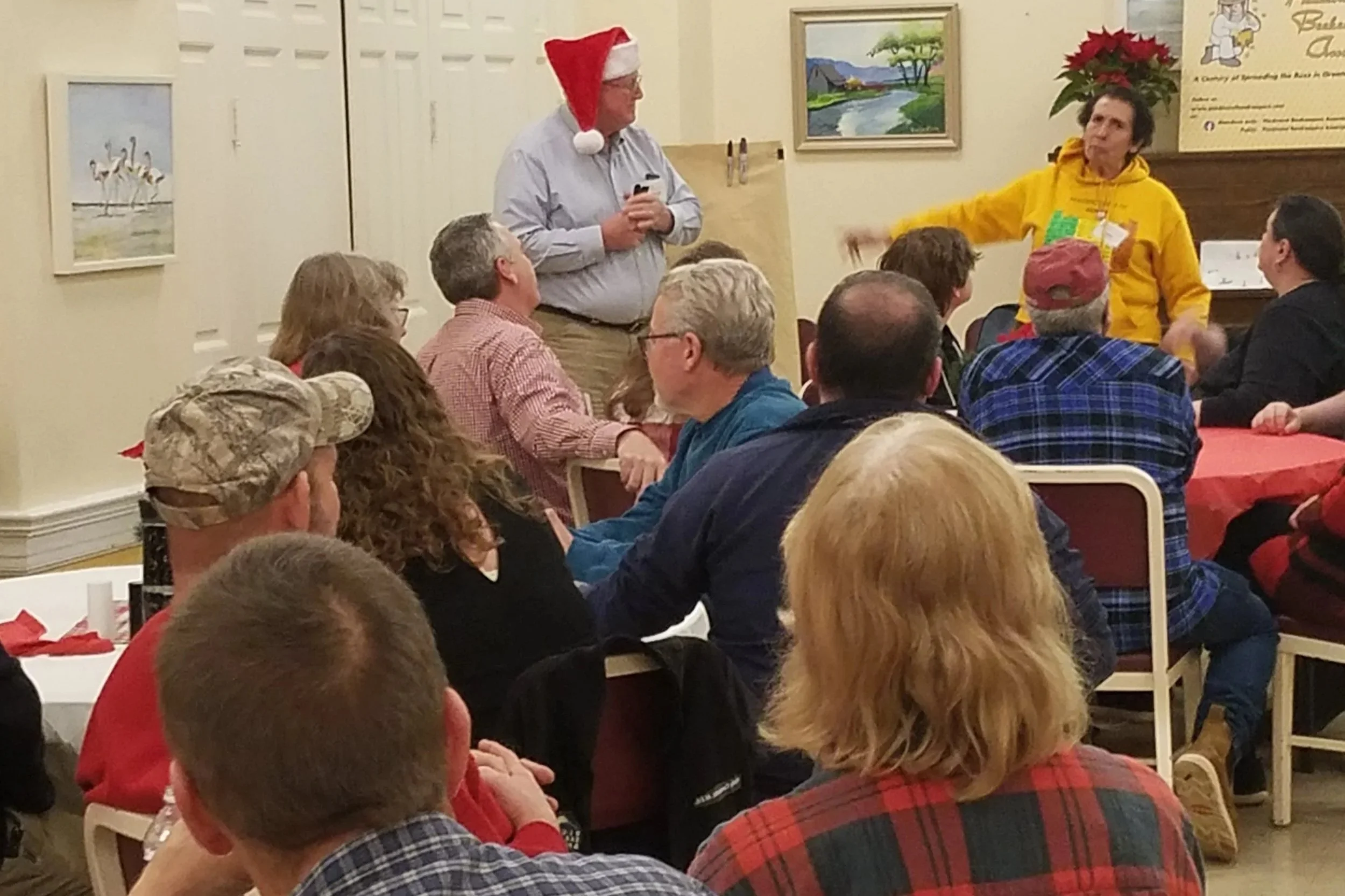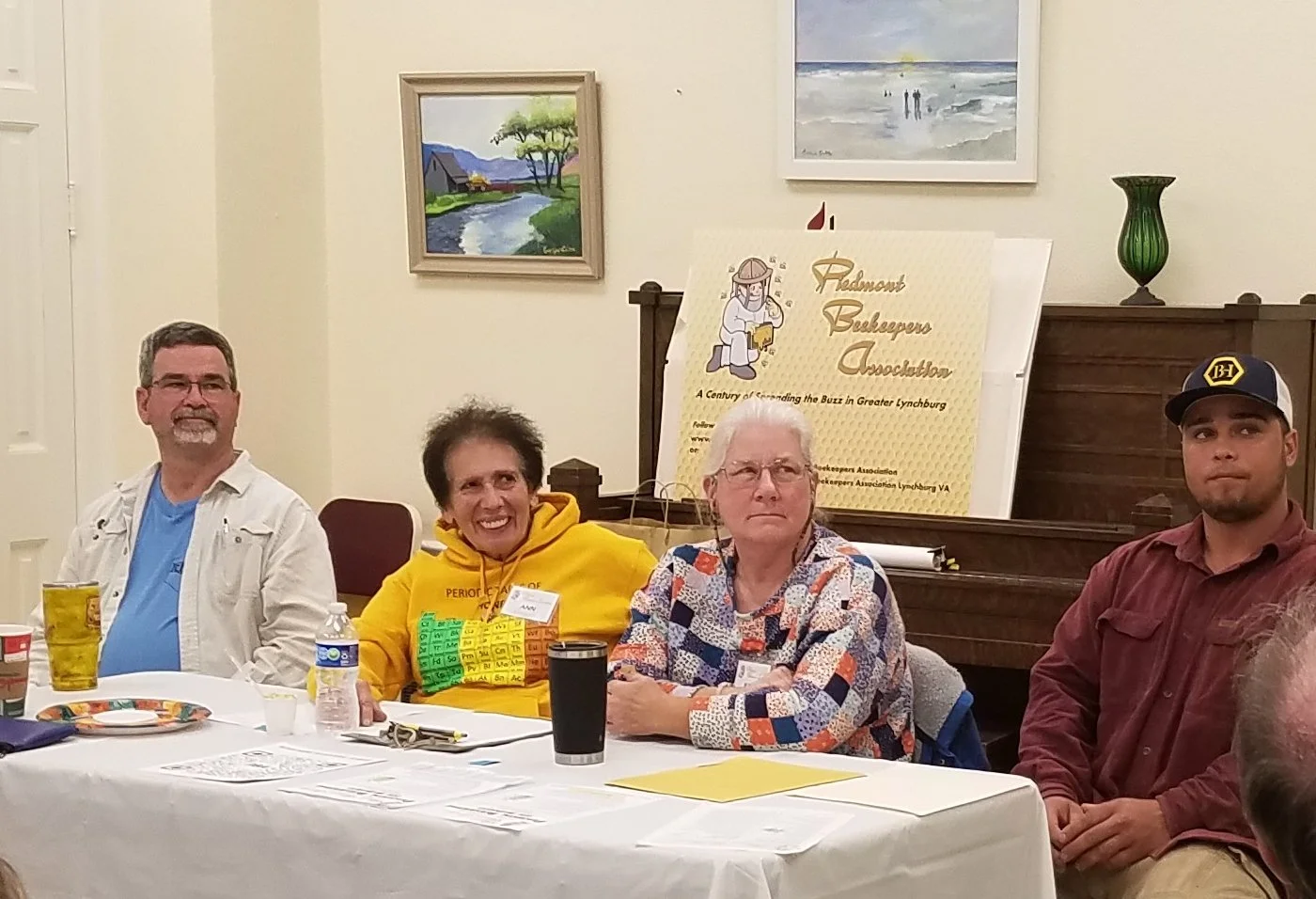 Club members enjoyed a delicious holiday meal with turkey and all the trimmings prepared by our talented cooks. After dinner, we played a challenging game of Beekeeping Trivia. Team “Humbugs” took home the coveted “BS” trophy. Congratulations to the “Humbugs”, Terri St. Cloud, Bob Fenton, Josh Urban, Peggy Lankford, Wayne Reed and Karen and Allen Mathers .